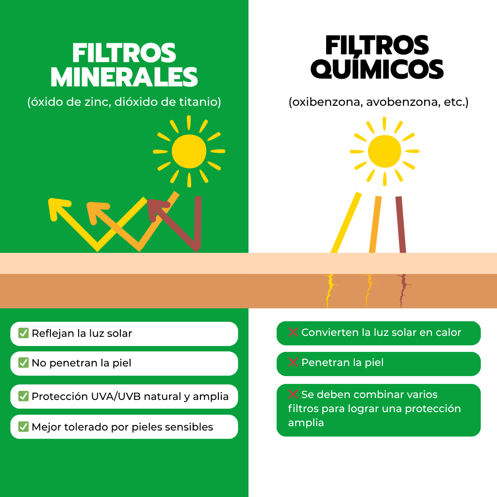 - El óxido de zinc crea una barrera física contra los rayos UVA/UVB